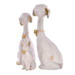 White and Golden Set of 3 Cute Dog family Statues ? Adorable Animal Figurines that elevate your home decor with their undeniable charm! These decorative showpieces are crafted to bring smiles and warmth to your space, perfect for displaying in your living room, bedroom, or even on your office desk. Whether you’re a dog lover or want to surprise someone with a thoughtful gift, these statues are a delightful choice. Celebrate birthdays, housewarmings, or simply spread joy with these lovable companions. Add a touch of whimsy and elegance to your home, and let these canine beauties brighten your surroundings in style!
