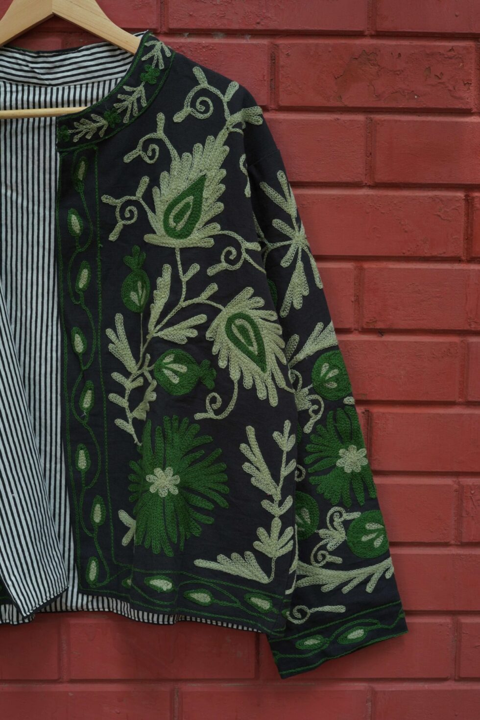 Elevate your festive and ethnic look with this stunning Suzani Embroidered Velvet Jacket. Crafted from premium-quality soft velvet fabric, this jacket offers a luxurious feel and rich texture that enhances every outfit. The intricate Suzani embroidery adds a royal charm and artistic appeal, making it a perfect fusion of traditional craftsmanship and modern style.